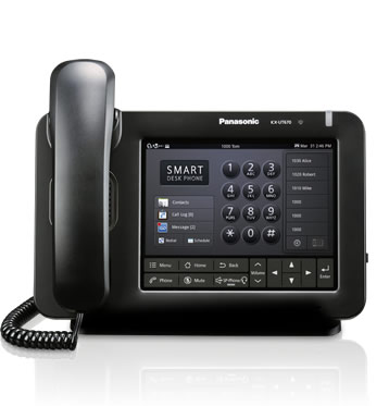 The highly expandable smart desk phone with color LCD features a 7-inch touch-panel function.